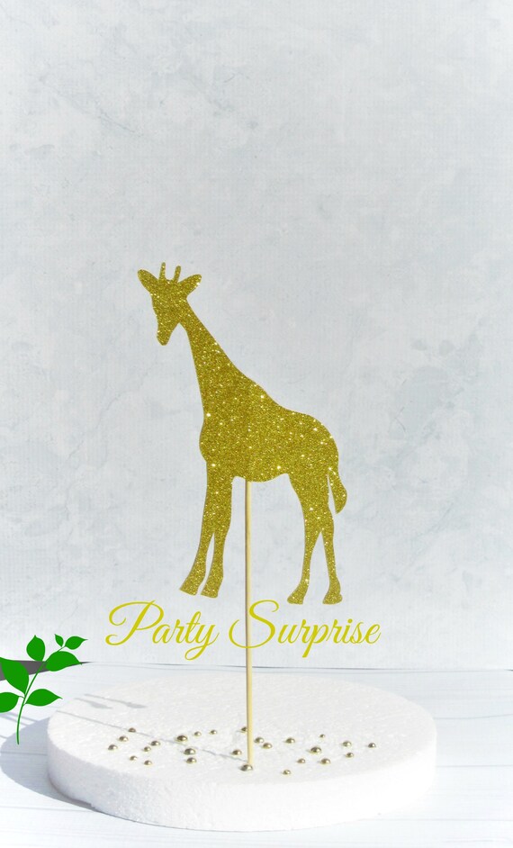Giraffe Cake Topper Gold Glitter Safari Party Cake Decoration Etsy