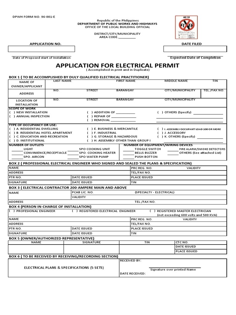 Electrical Permit Form PDF Manufactured Goods Electrical Engineering