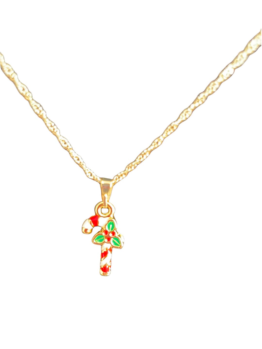 CANDY CANE Necklace Gold Plated With Chain Small Christmas Gift Etsy