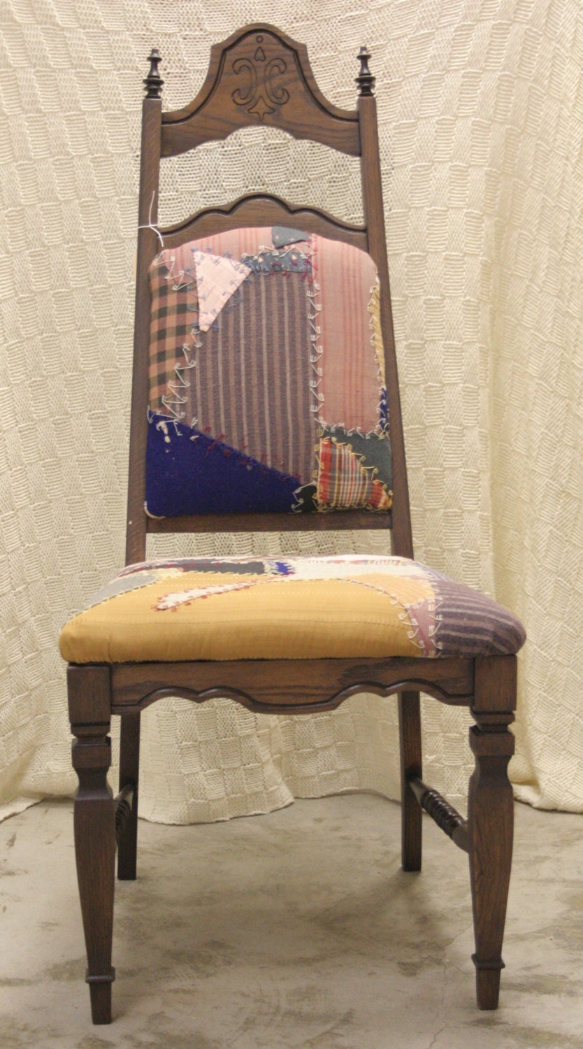 Antique Crazy Quilt accent side high back chair by Knicknaques