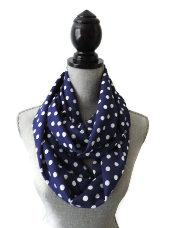 Navy Polka Dot Infinity scarf blue polka dot scarf circle