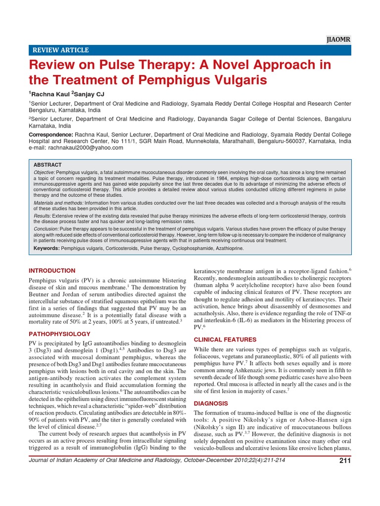 Review on Pulse Therapy A Novel Approach in the Treatment of Pemphigus
