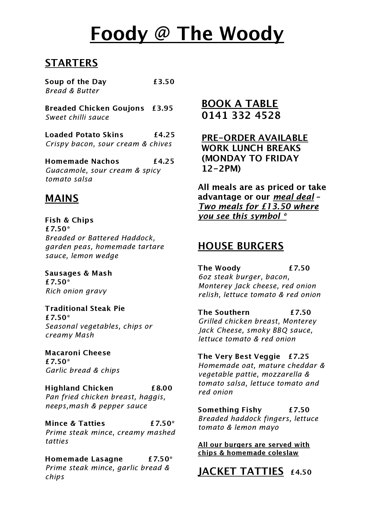 Menus The Woodside Inn