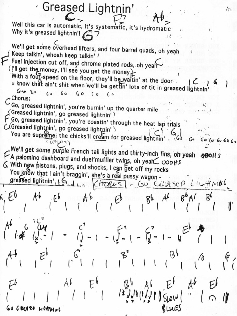 Greased Lightning Cheat Sheet With Bar Lines For Chords PDF