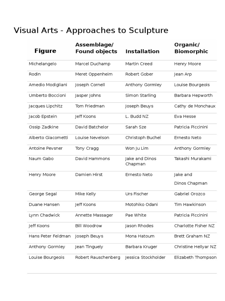 Four Basic Methods For Making A Sculpture Are Modern Sculpture Artists What Are The 4 Approaches To Sculpture It has mass, one of the elements of art. Sculptures can be created in relief, where the primary form’s surface is raised above the surrounding material, such as the image on a coin. It highlights the conceptual frameworks that have shaped sculpture into recognizable art historical subjects, and. This unit explores the evolution of sculpture, from traditional carving and casting. What Are The 4 Approaches To Sculpture.