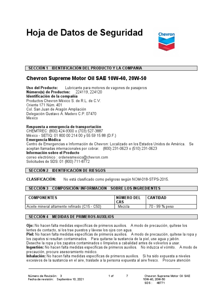 Msds For Motor Oil Sae 10W-30 . Section 1 product and company identification. Identification sds # product use engine oils.