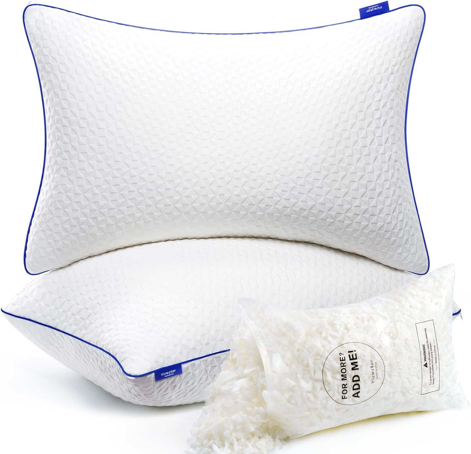 Shredded Memory Foam Pillows Queen Size Set of 2, Adjustable Firm