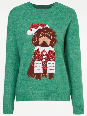 Green Dog Sequin Christmas Jumper Women at ASDA