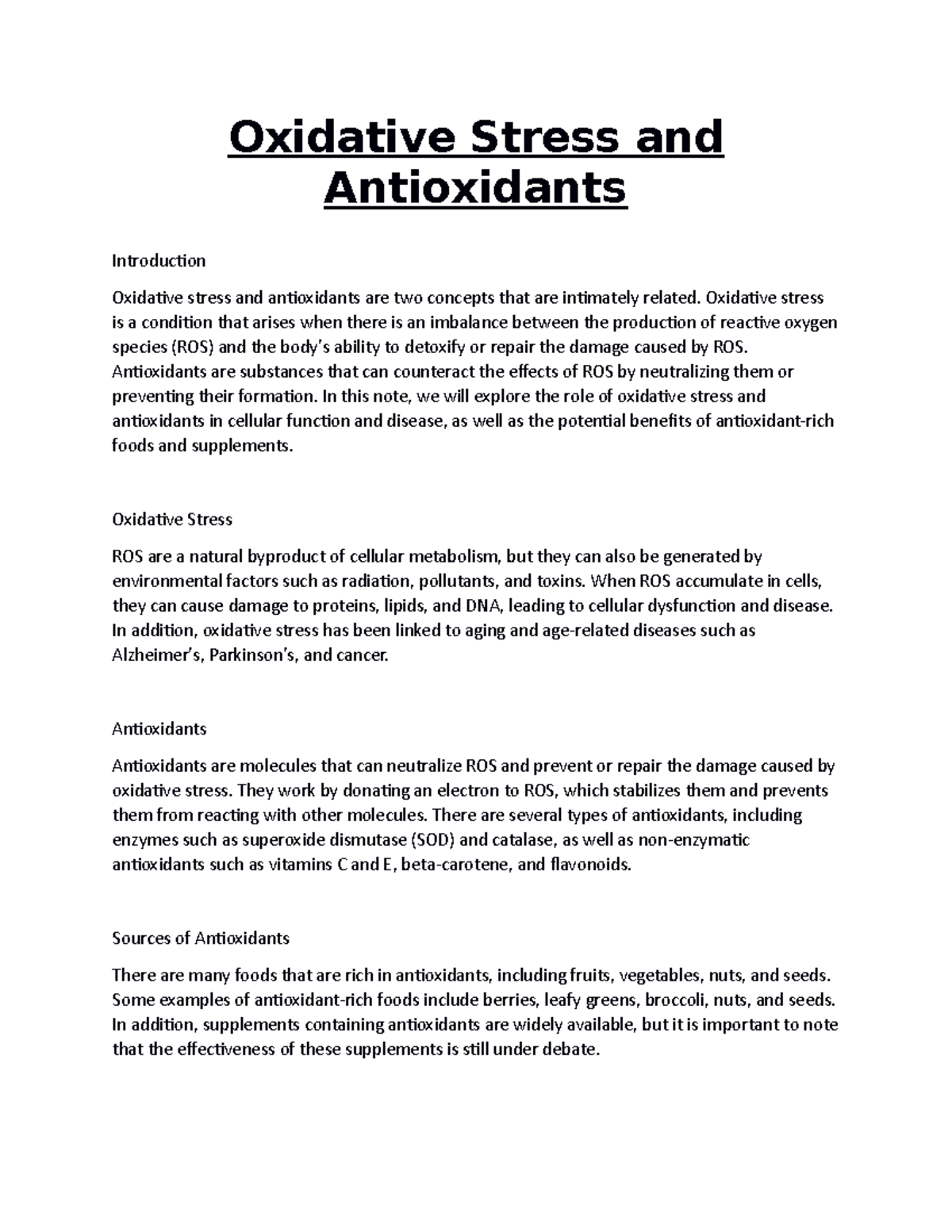 Oxidative Stress and Antioxidants Oxidative Stress and Antioxidants