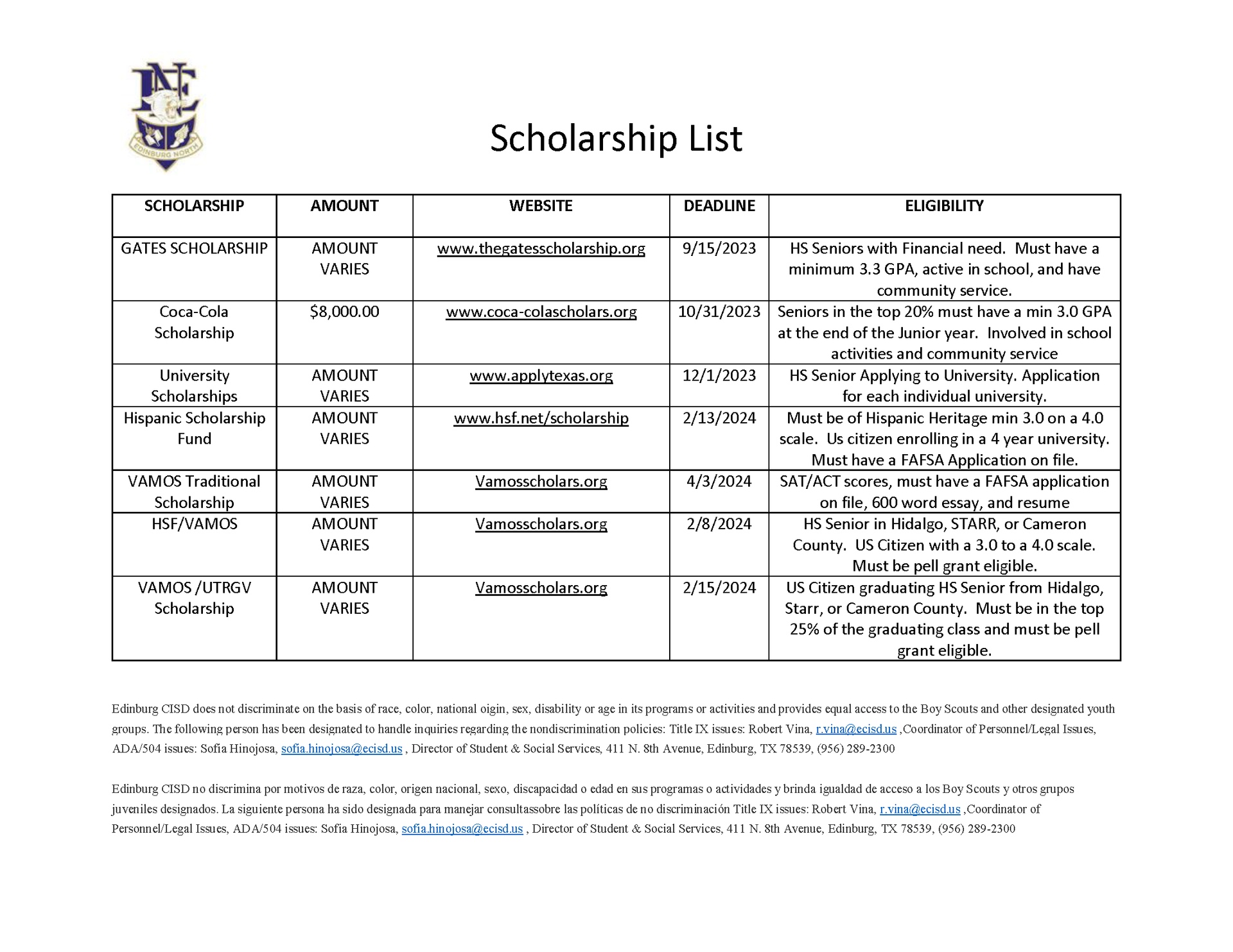 Scholarships Financial Aid Office Edinburg North High School