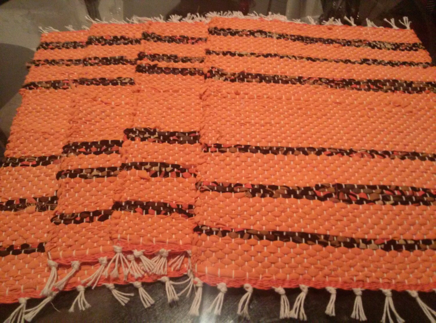 Four Orange & Browns handwoven Placemats by TwiceisNiceBooBooRug
