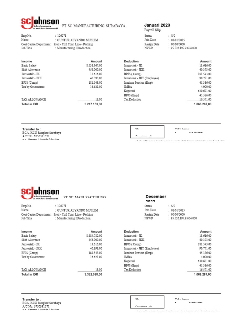 Payroll Slip Guntur Alyando Baru PDF Payroll Tax Government