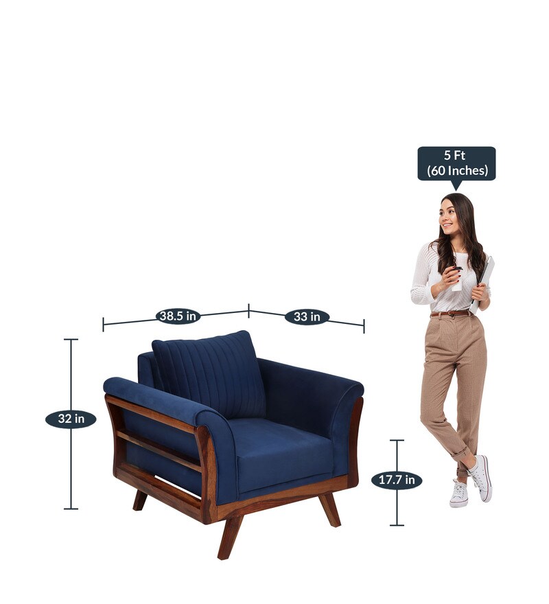 Buy Anderson Solid Wood 1 Seater Sofa in Blue Colour by Evok Online