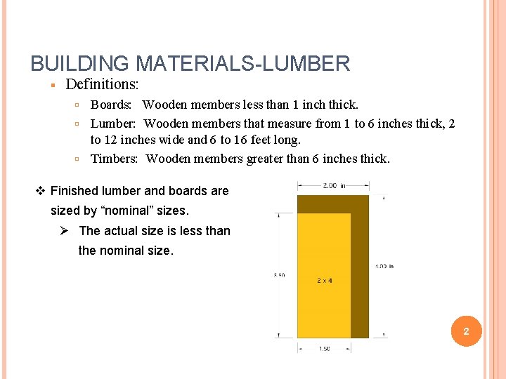 WOOD 1 BUILDING MATERIALSLUMBER Definitions Boards Wooden members