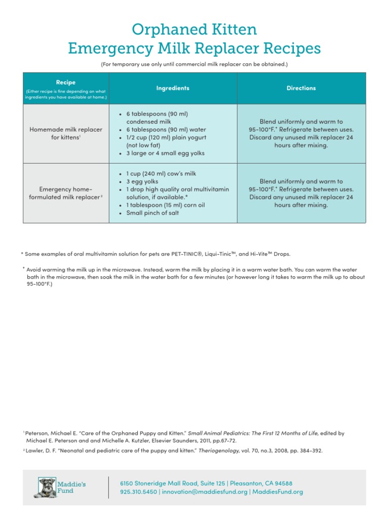 Orphaned Kitten Emergency Milk Replacer Recipes Download Free PDF