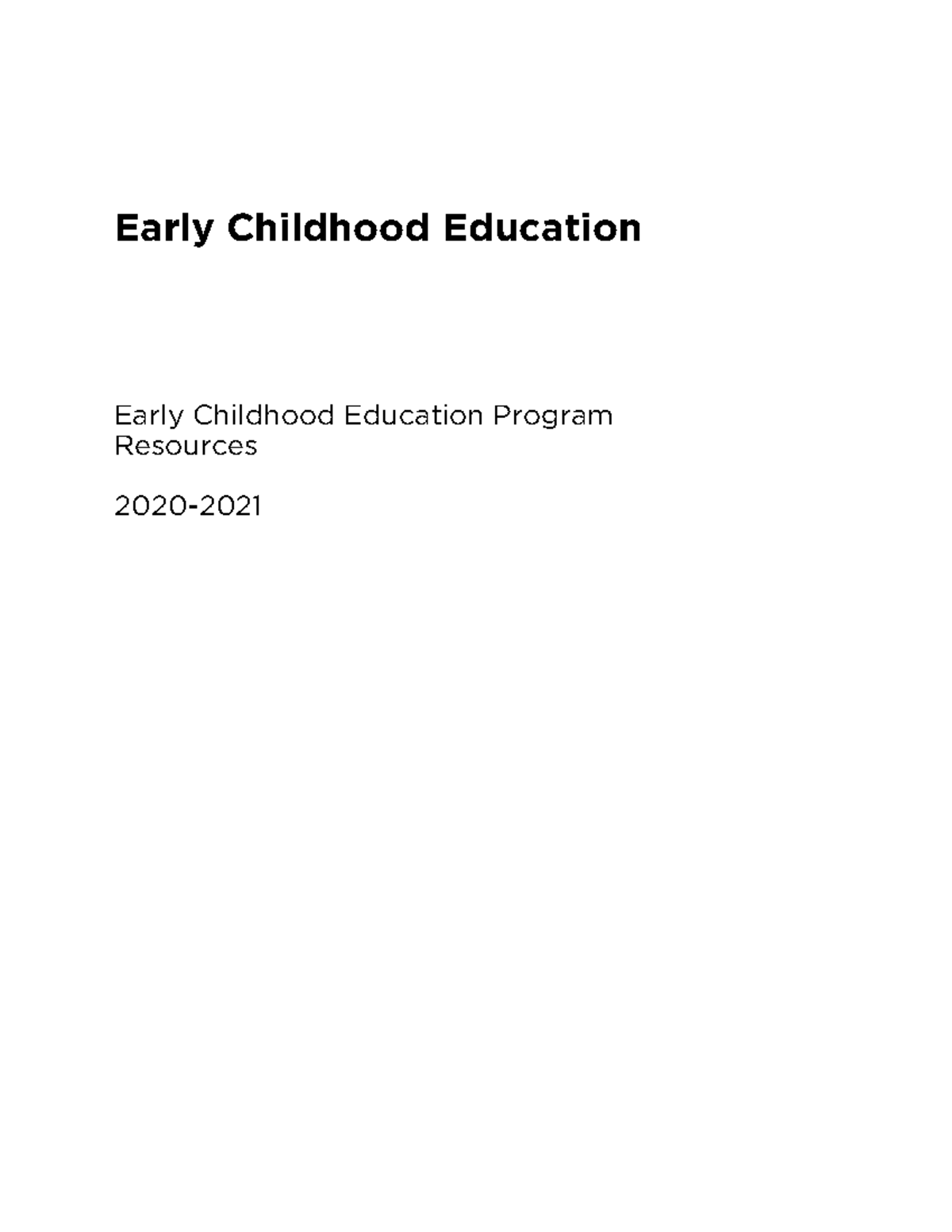 Early Childhood Education Program Resource Book (20202021) Early