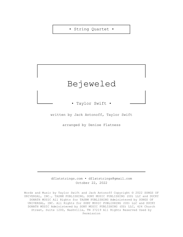 Bejeweled (arr. Denise Flatness) by Taylor Swift Sheet Music for String