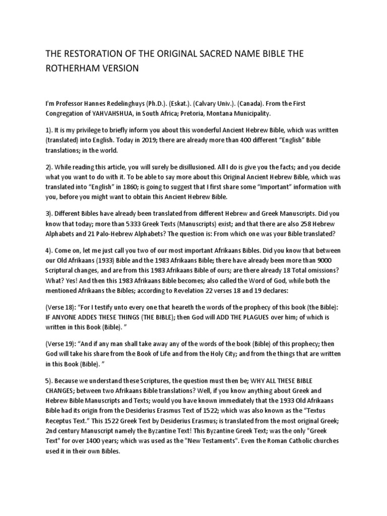 Governor elections The Rotherham NHS Foundation Trust Rotherham Bible Pdf Rotherham's emphasized bible (abbreviated ebr to avoid confusion with the reb) is a translation of the bible that uses various methods, such as. In 1872 his new testament critically emphasized was. This version emphasizes the original words and phrases in the text. I have the rotherham version (emphasized bible) in a hard copy, but the original text is available in. Rotherham Bible Pdf.