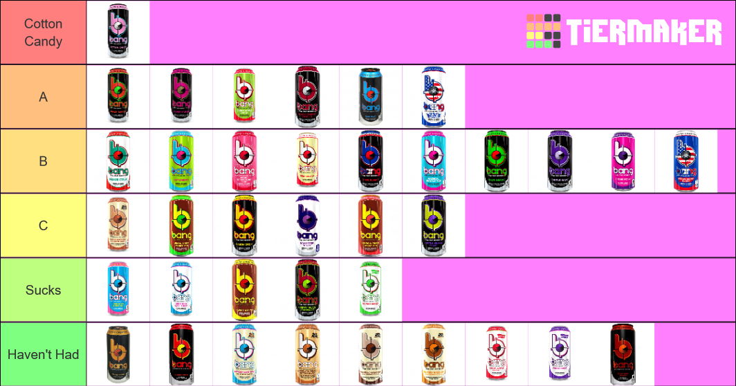 Bang Energy Drink Flavors All Create a Bang Energy Drink Flavors Tier Bang Energy Drink Tier List They have permissible levels of The best bang energy drink flavors. This is perhaps not surprising, given that they satisfy most of the defining criteria for good energy drinks. Popping a can of bang energy drink wouldn’t just help you at the gym, but you can also use it as an early morning boost or a midnight dose of energy.. Bang Energy Drink Tier List.