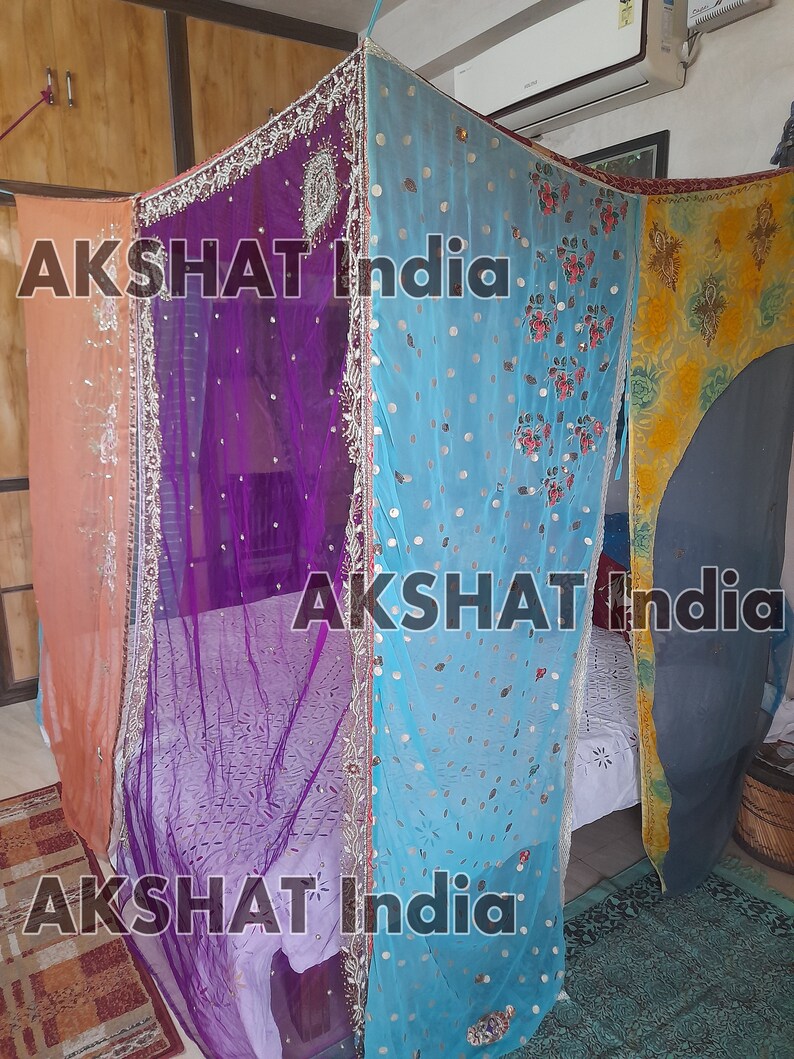 Bed Canopy Curtains Boho Curtains Bohemian Decor India Silk Etsy