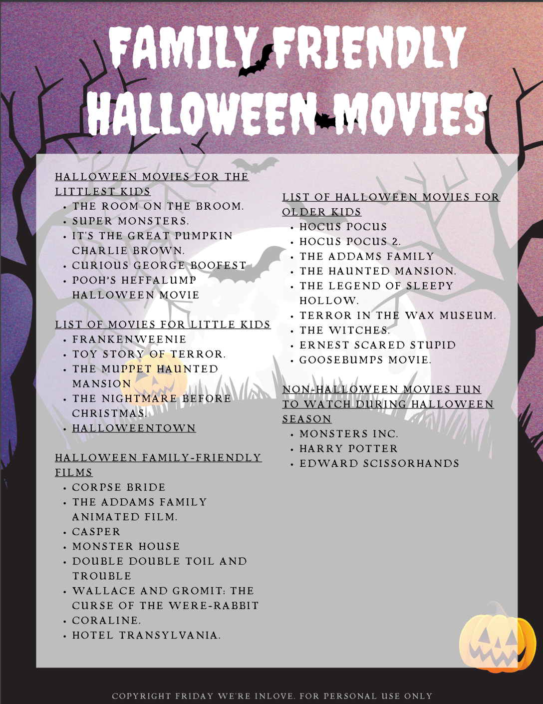 Halloween Family Films Halloween Movie List Friday We're In Love
