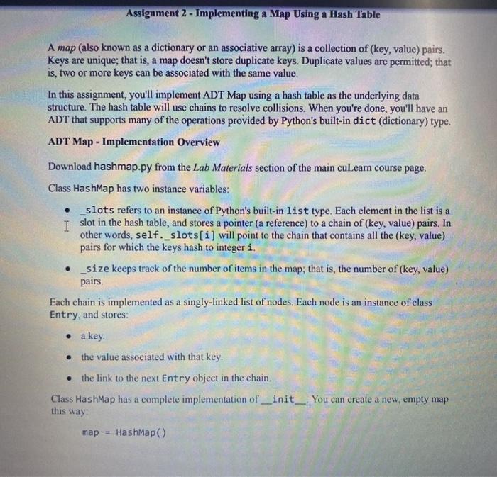 Solved Assignment 2 Implementing a Map Using a Hash Table