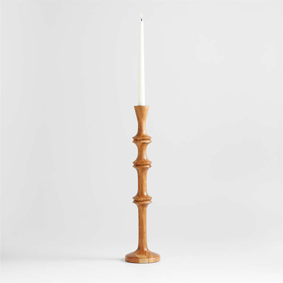Century Natural Acacia Wood Taper Candle Holder 20" Crate & Barrel