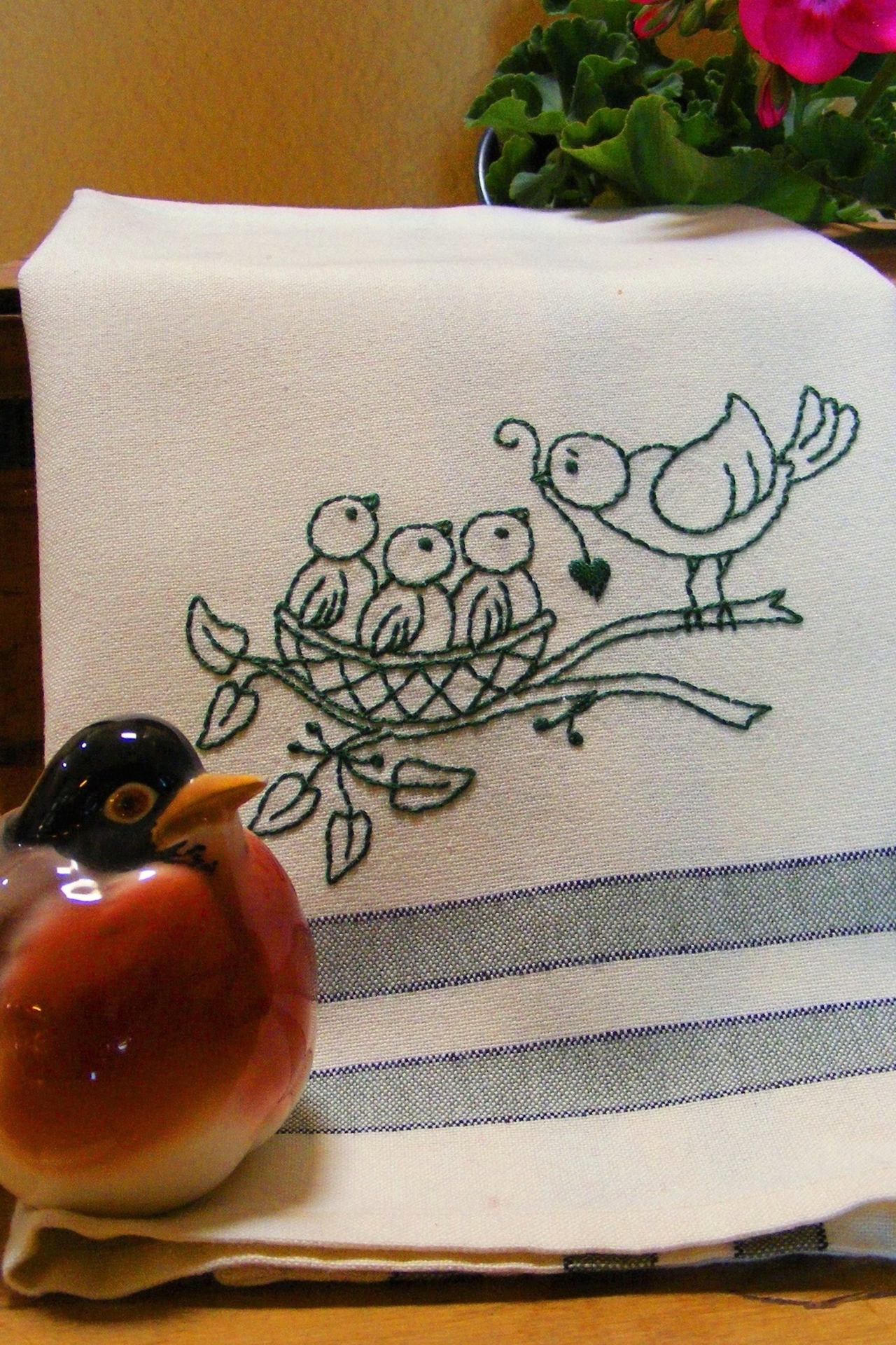 Feathered Family Tea Towel Hand Embroidery Pattern