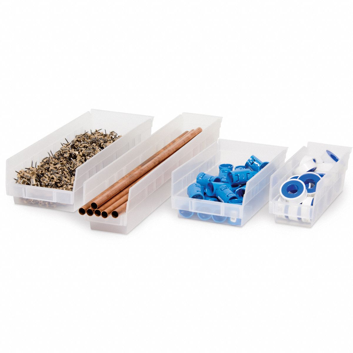 AKROMILS Shelf Bin 23 5/8 in Overall Lg, 4 1/8 in x 4 in, Clear