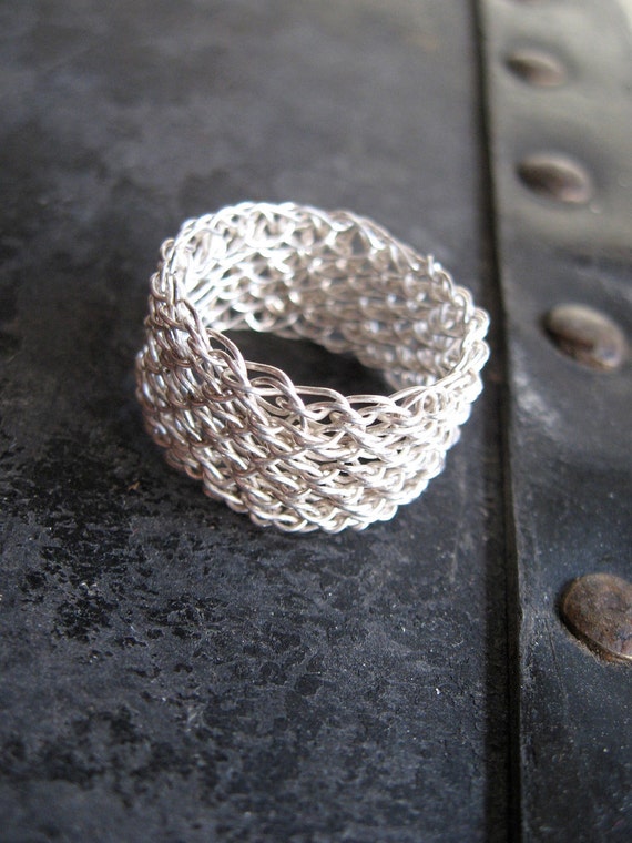 Items similar to Silver Mesh Ring, hand crocheted fine silver on Etsy