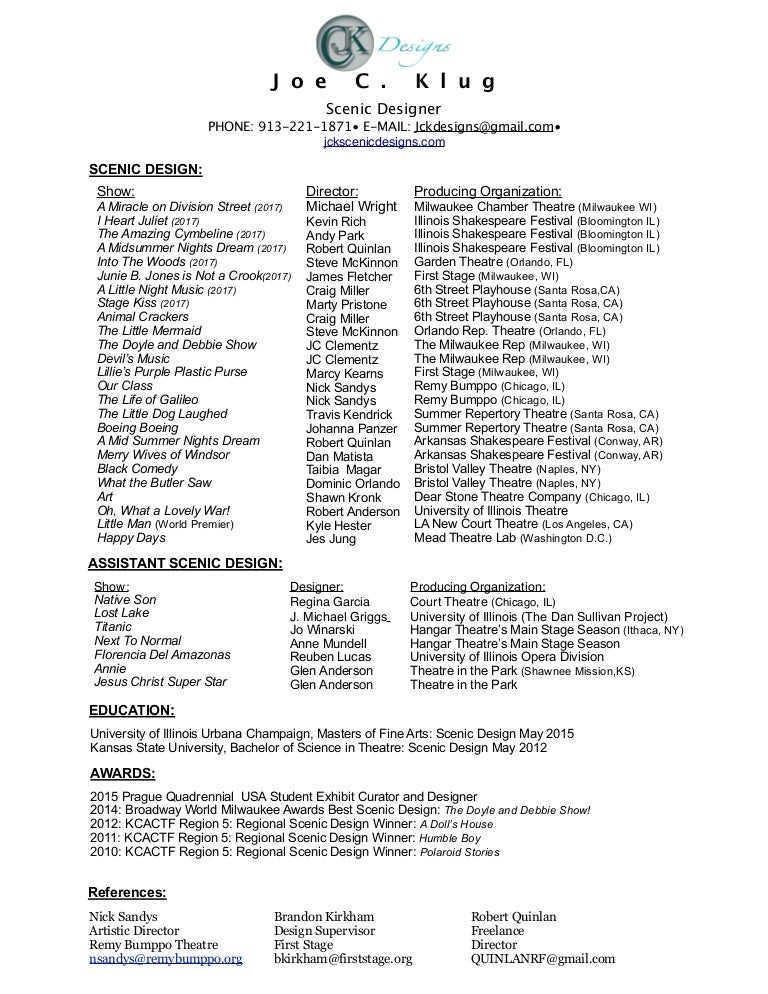 Joe C. Klug Scenic Design Resume
