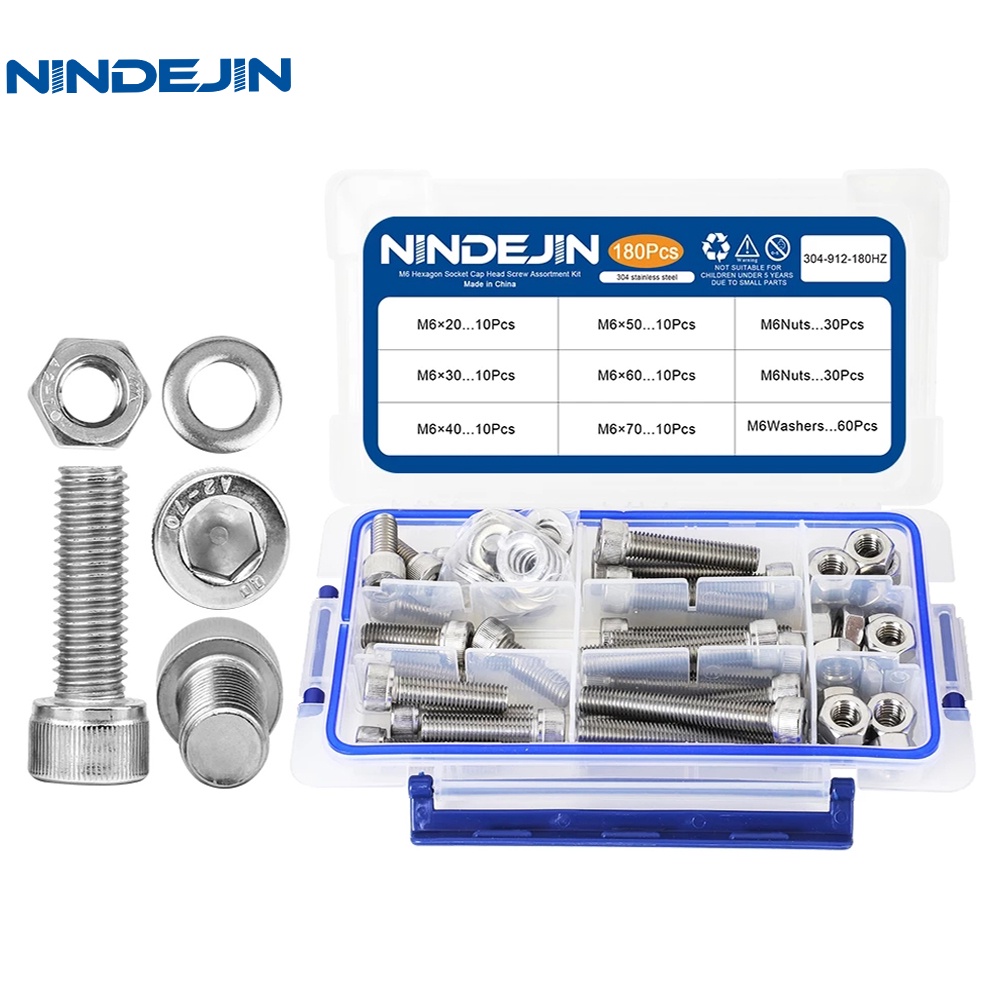 NINDEJIN Hexagon Hex Bolt Set M6 M8 M10 Bolts And Nuts Stainless Steel