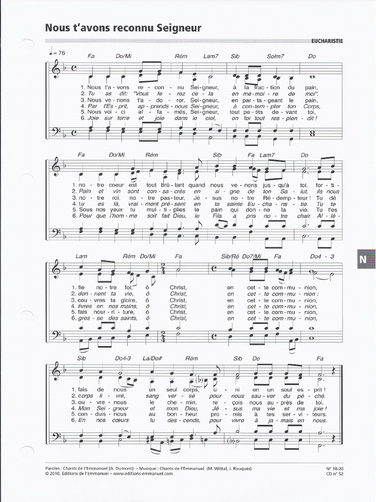 Seigneur, prends pitié (NOUS AVONS MANQUE D'AMOUR) Sheet music for Partition Gratuite Nous T'avons Reconnu Seigneur Nous t´avons reconnu, seigneur paroles et musique : Download and print free sheet music of nous t'avons reconnu, seigneur, a religious song by communauté de l'emmanuel. Nous t'avons reconnu seigneur, à la fraction du pain, notre cœur est tout brûlant quand nous venons jusqu'à toi. Il est donc reconnu comme un acteur de la société civile. C’est un mouvement d’eglise. Partition Gratuite Nous T'avons Reconnu Seigneur.