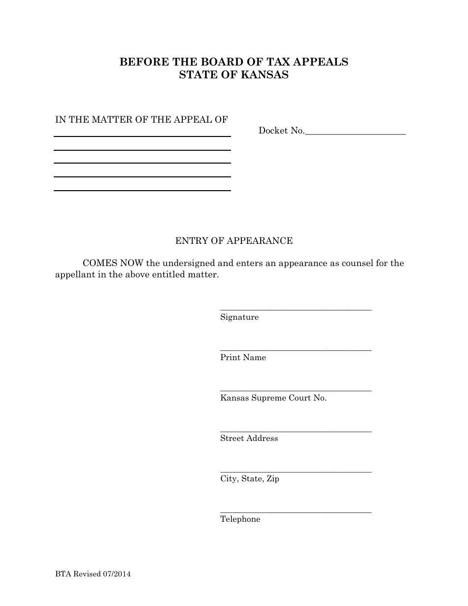 Kansas Entry of Appearance Fill Out, Sign Online and Download PDF