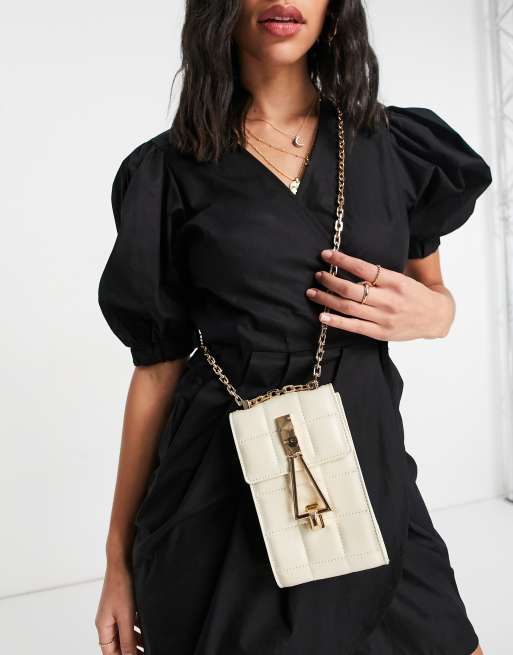 crossbody bag with triangle lock in Bone ASOS