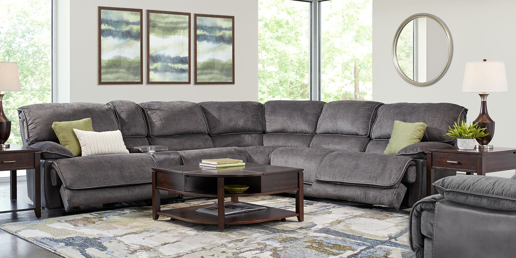 Riverbrook Gray 6 Pc Power Reclining Sectional Rooms To Go