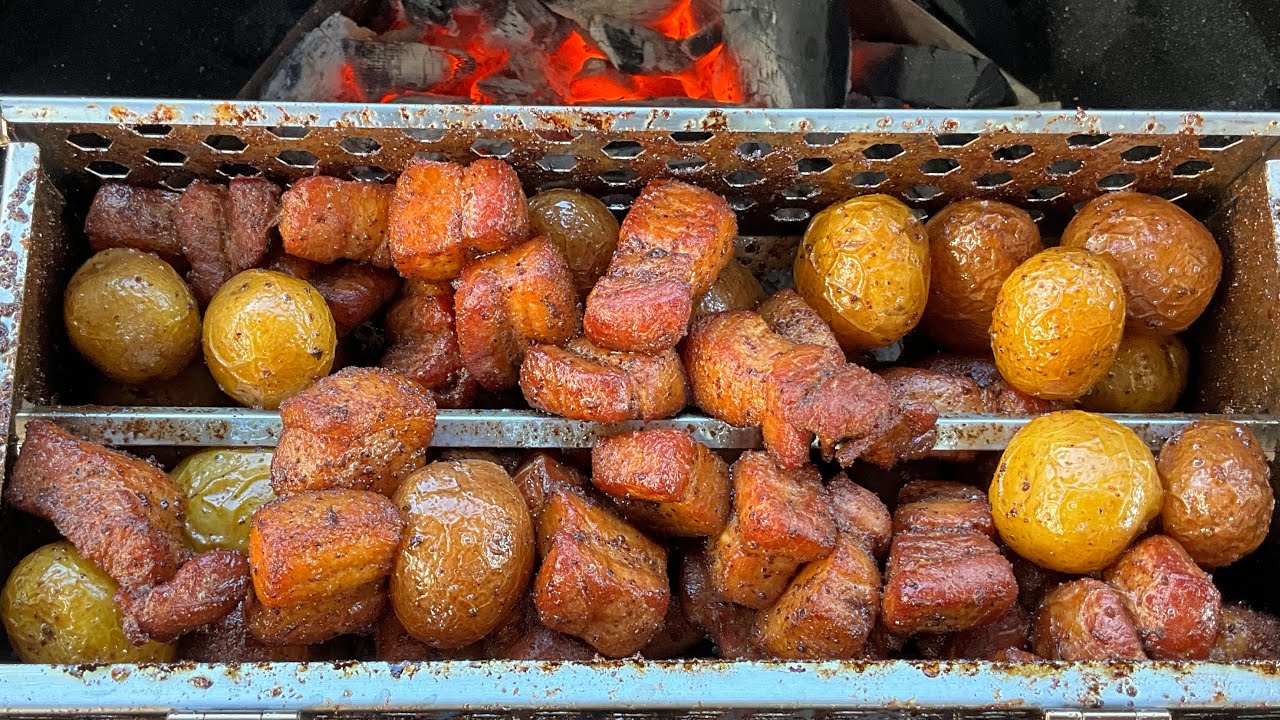 Only Fire Rotisserie Basket Pork Belly and Potatoes YouTube
