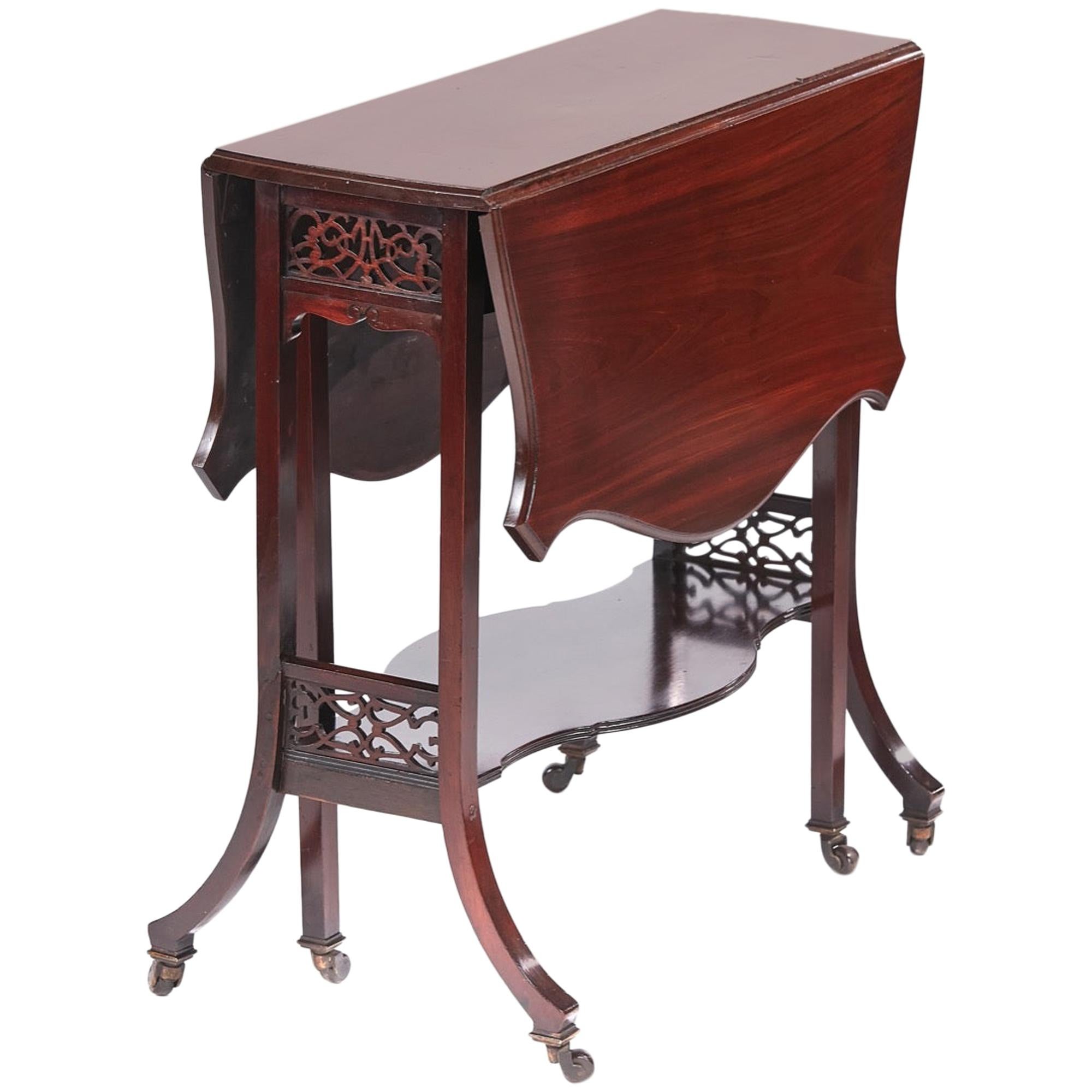 Small Antique Victorian Quality Mahogany Table with Two Drop Leaves For