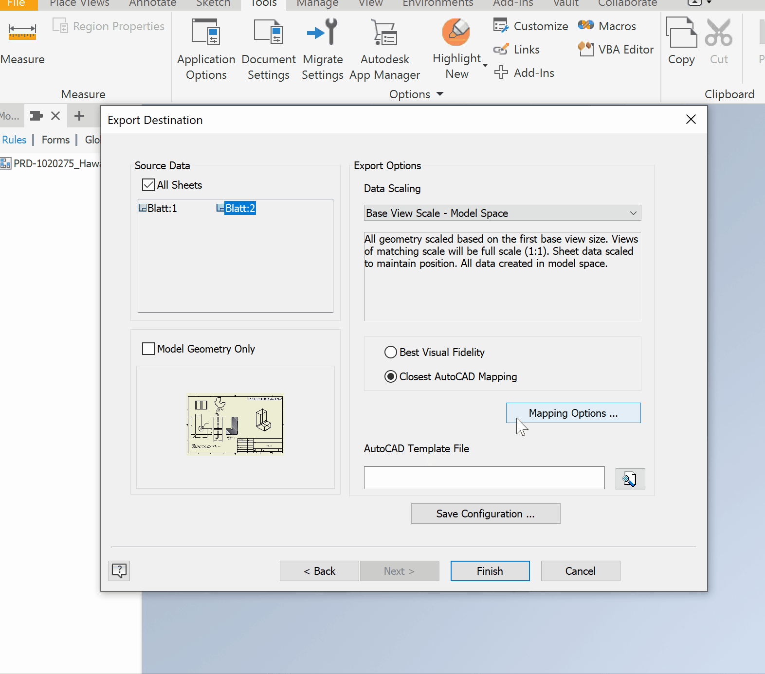 Exportación de IDW desde un dibujo de Inventor al formato DXF con el
