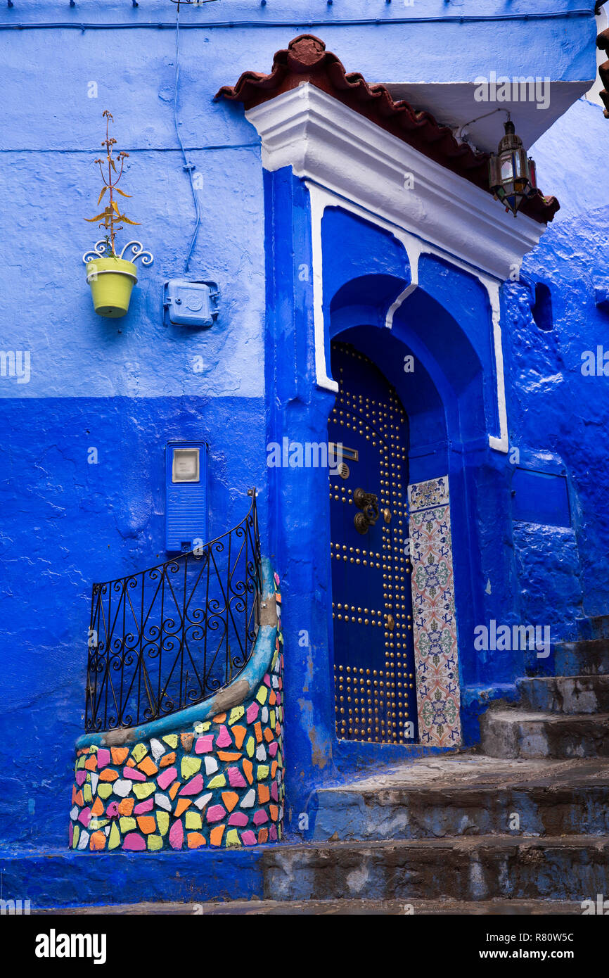Morocco, Chefchaouen, Blue City, Medina, colourful tiled doorway of