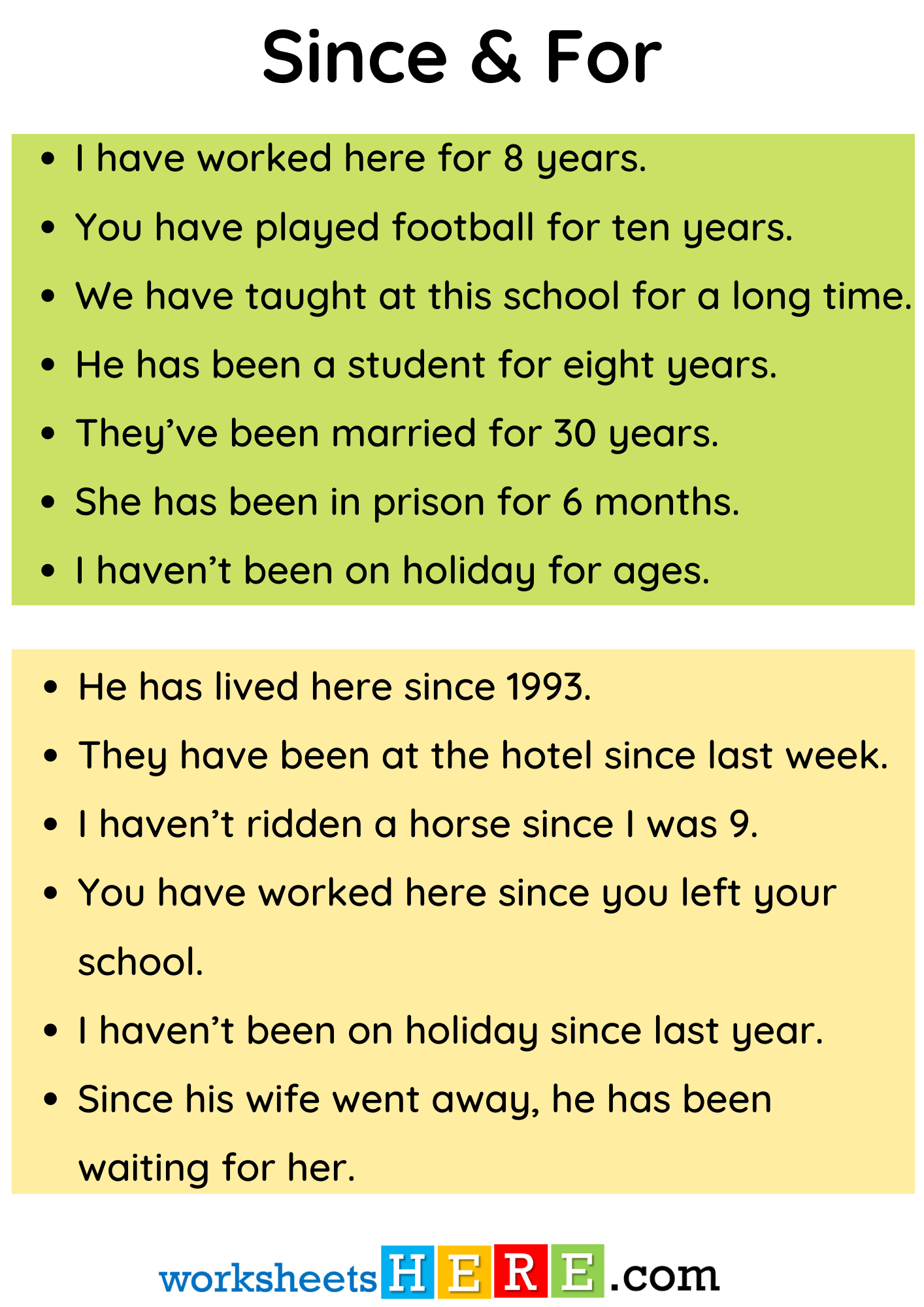 for and since ESL worksheet by cinta9993 Use It In A Sentence Since To use “since” to show the reason for something, you can combine it with a clause or a reason. It was 1974, and he had been living in london since. When since is used as a conjunction, it joins a main clause and a subordinate clause. He left home two years ago and has since become a soldier. since we. Use It In A Sentence Since.