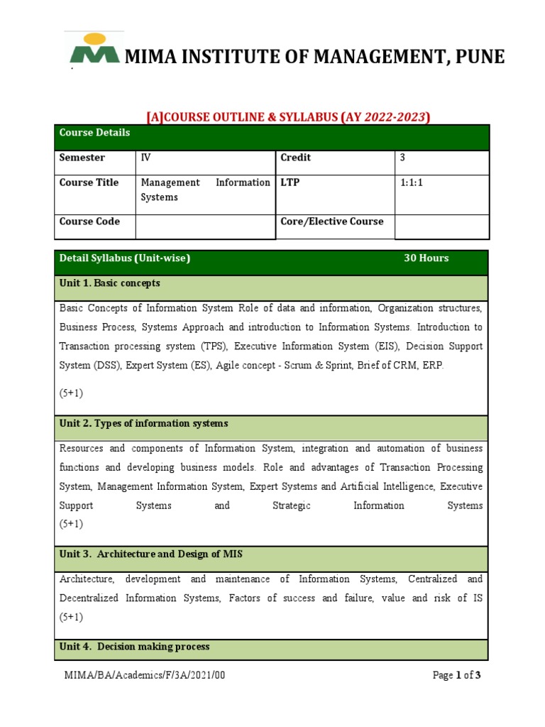 Management Information Systems Syllabus PDF Decision Support