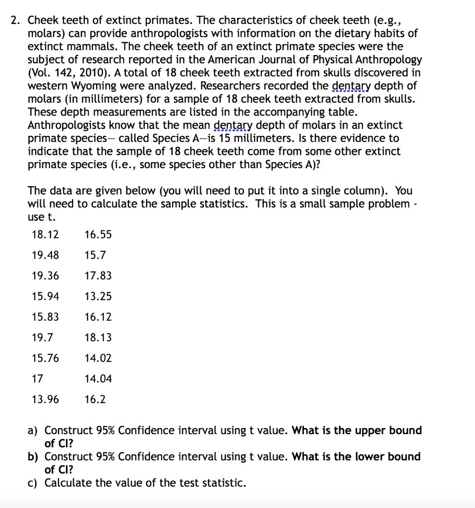 SOLVED 2. Cheek teeth of extinct primates. The characteristics of