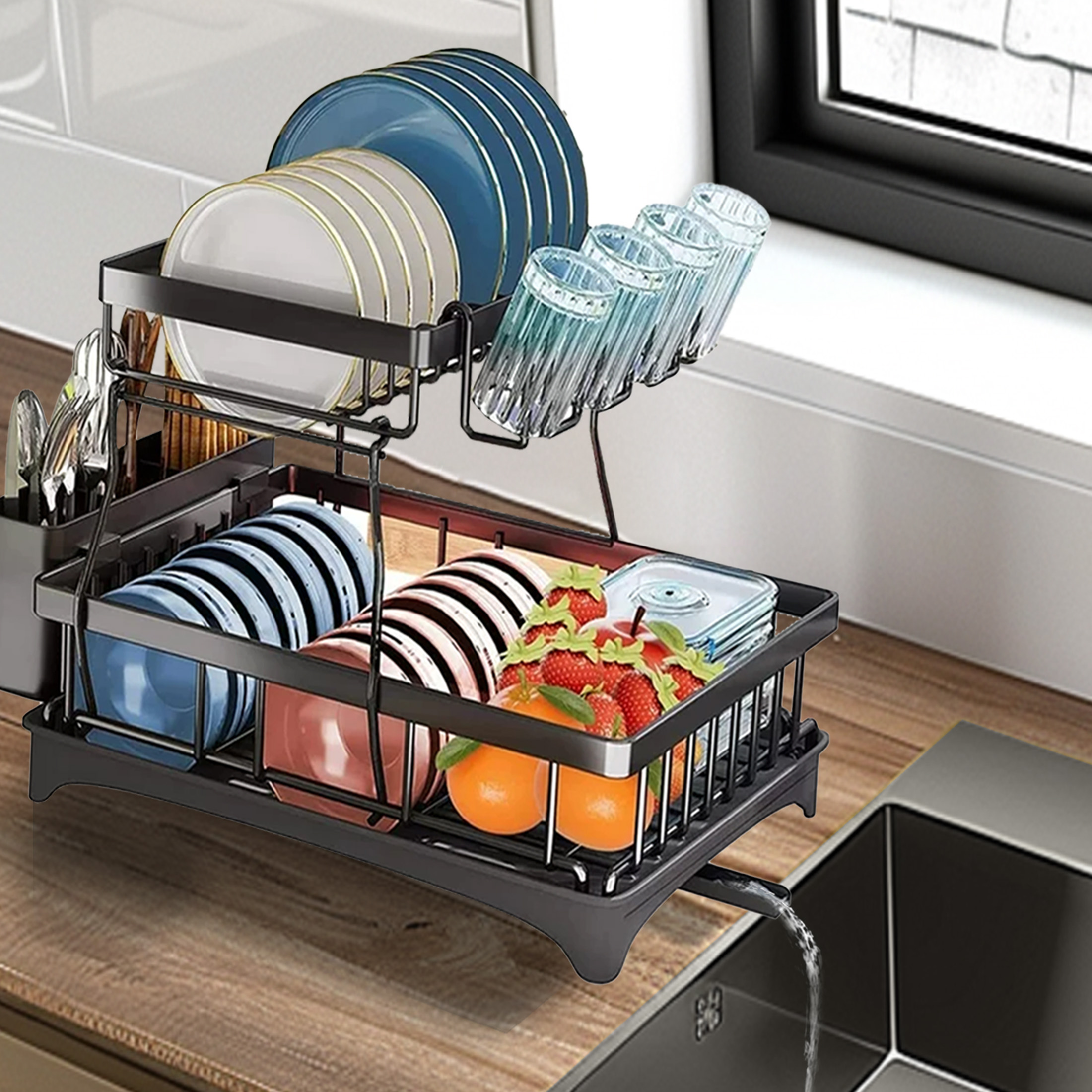 cut down on dishwashing time and keep counters dry with the rubbermaid antimicrobial dish drying rack with drainboard. The drying rack securely holds dishes, glasses, and more in. large black drain board fits under any large dish rack to catch water or for larger pots alone, angled base allows for self draining. neatly organizes dishes after washing with this dish drainer, featuring 13 slots and extra. coated wire cushions and protects dishes and sinks; the rubbermaid drain board is a universally sized dish drainer tray that keeps countertops dry with its sloped, modern design.