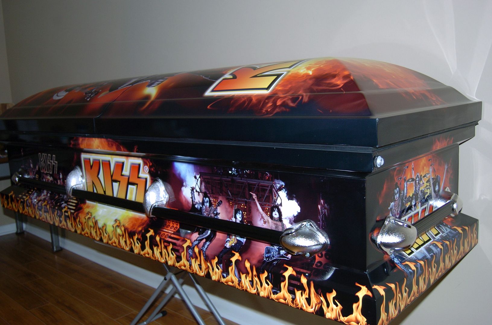 KISSopolis Andy's New KISS Kasket How Much Does A Kiss Kasket Cost “the kiss kasket is completely covered with a specially laminated photomural that features. Its primary specialty is the band’s logo and pictures of the. Own an officially licensed kiss kasket. The kiss kasket, with a suggested price of $4700, launched in 2001 via the band’s official website. The kiss casket costs $3,000 and was provided to the abbott family by. How Much Does A Kiss Kasket Cost.