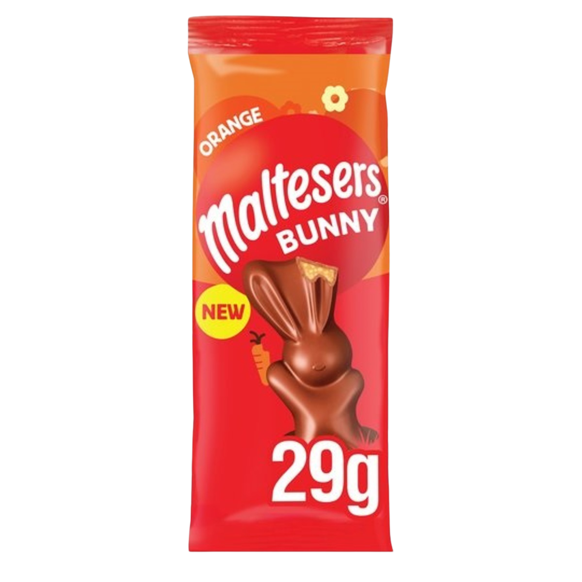 Maltesers Bunny Orange Chocolate Easter Treat 29g Candy Street Co. Maltesers Chocolate Easter Bunny Treat 29G Includes a 29g snack size maltesers milk chocolate easter bunny with a crunchy creamy maltesers centre. Milk chocolate with an orange flavoured malt filling (31%) and honeycombed pieces (5.5%). A milk chocolate bunny with an orange flavoured malt centre and crunchy honeycomb pieces. Indulge in a delightful chocolate experience with maltesers bunny orange chocolate easter treat. Maltesers with new chocolate. Maltesers Chocolate Easter Bunny Treat 29G.
