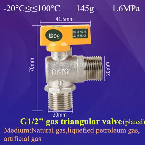 G 1/2" BSPP Port Size Male G Thread Brass Plated Gas Ball Valve Angle