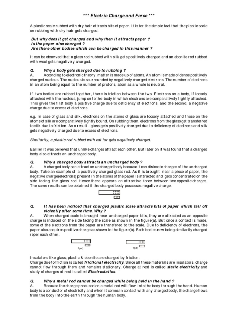 Electric Charge and Force Similarily, A Plastic Rod Rubbed With Cat