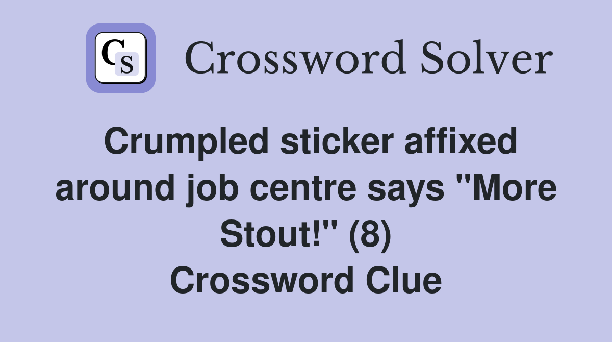 Crumpled sticker affixed around job centre says "More Stout!" (8 Kind Of Sticker Crossword Clue Kind of sticker crossword puzzle solutions. We will try to find the right answer to this particular crossword clue. The crossword solver finds answers to classic. If more than one crossword definition exists for a clue. Did you find this helpful? The crossword dictionary explains the answers for the crossword clue 'kind of sticker'. If this solution does not solve. Kind Of Sticker Crossword Clue.