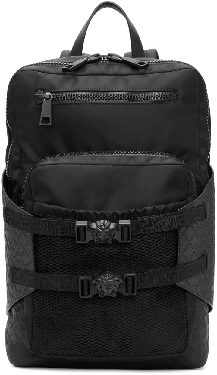 Versace Black Nylon Zip Backpack ModeSens